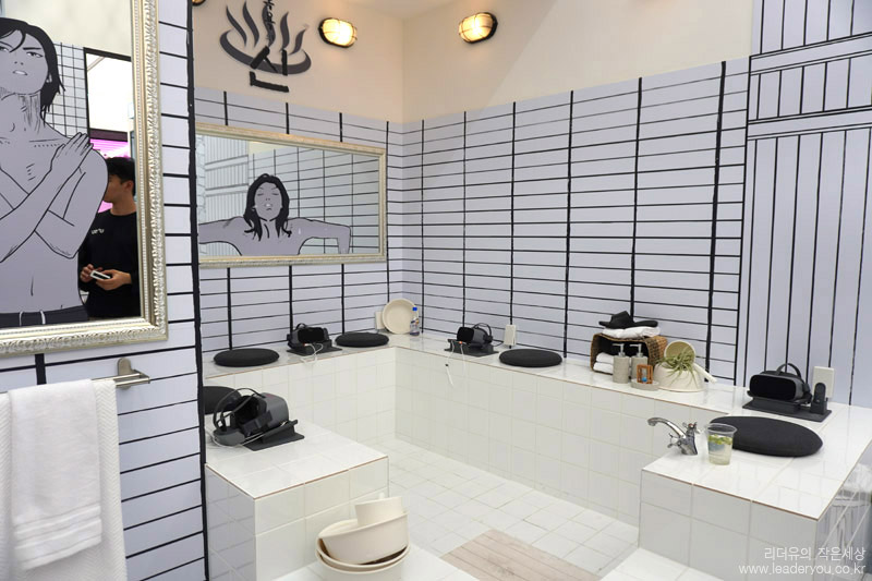 리얼하게 꾸며진 목욕 공간! VR기기를 장착하고 앉으면 목욕의 신 AR로 또 다른 세상을 만나게 됩니다.
