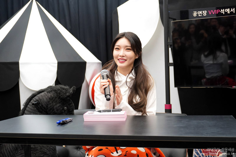 이용진 개그맨의 사회로 행사가 시작되었고 5G 유플런서 발대식 1부는 청하의 사인을 받을 수 있는 행운이 주어졌습니다.