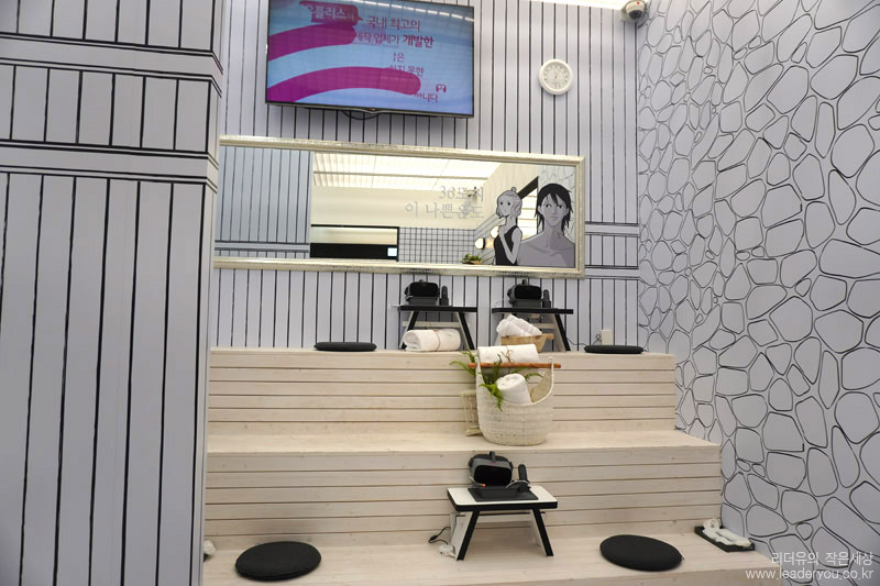 리얼하게 꾸며진 목욕 공간! VR기기를 장착하고 앉으면 목욕의 신 AR로 또 다른 세상을 만나게 됩니다.