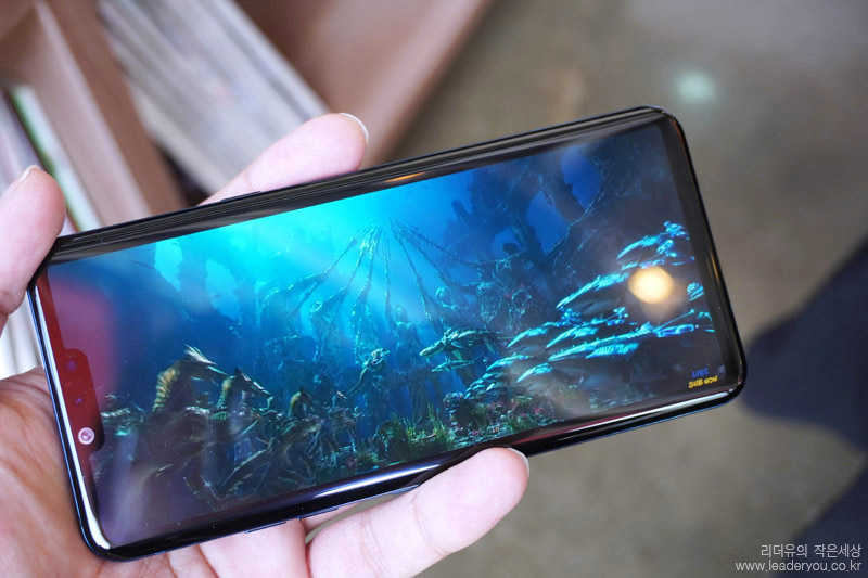 LG G8 ThinQ의 전면을 보면 리시버홀 조차 없는 매끄러운 화면을 가지고 있습니다. 전화통화를 할때는 꼭 리시버홀을 통해 통화를 했어야 했지만 LG G8 ThinQ는 화면 어디에다가 귀를 대더라도 소리를 들을 수 있습니다. 스마트폰의 고정관념을 없앤 새로운 기술이라 보시면 됩니다.