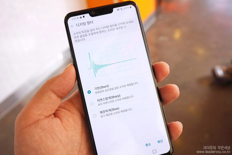 LG G8 ThinQ Hi-Fi Quad DAC이 활성화 되면 디지털 필터도 적용할 수 있습니다. 자신의 취향대로 사운드 튜닝이 가능해 맞춤형 사운드로 음악 감상을 할 수 있습니다.