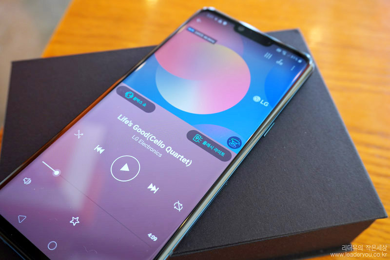 LG G8 ThinQ는 울림통을 이용해 소리를 들려주는 붐박스 스피커 기능이 적용되어 있습니다. 별도의 블루투스 스피커 없이도 웅장한 사운드를 들을 수 있는 매력이 있는데요