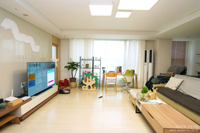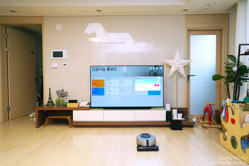 그리고 로봇청소기도 연결해 사용하고 있습니다. 청소가 필요한 순간 TV 리모컨으로 가볍게 청소를 시킬 수 있습니다.