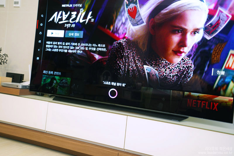 사운드도 인공지능으로 실감나는 사운드를 표현해 줍니다. 2.1채널의 원본 사운드를 콘텐츠 장르에 맞게 입체 효과로 재구성해 5개의 스피커와 1개의 우퍼가 있는 듯한 버추얼 5.1 사운드로 들을 수 있습니다. 5.1채널 이전 영상들도 이런 기능을 통해 개선된 사운드 효과를 볼 수 있다는 게 매력포인트입니다.