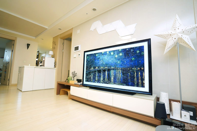 그리고 배젤 두께가 거의 없고 4면이 일정한 두께로 되어 있어 몰입감 측면에서도 좋고 공간 활용도 측면에서도 남다른 디자인 매력을 느낄 수 있습니다. 65인치 TV로 화면은 크지만 공간을 많이 차지 하지 않는다는 장점이 있습니다.