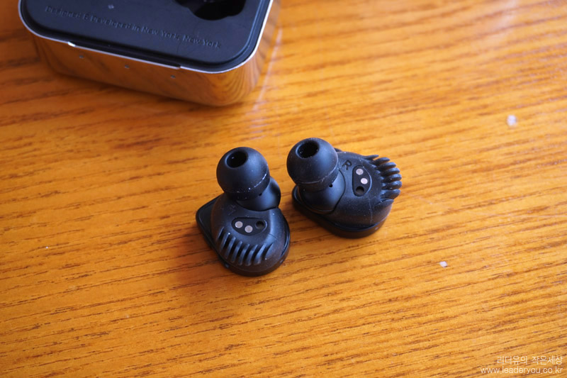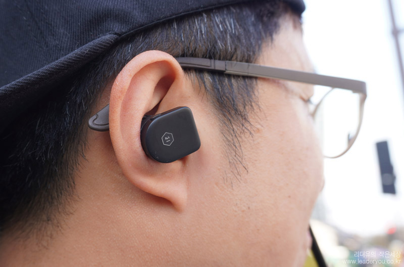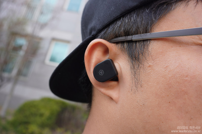 마스터앤다이나믹 MW07을 귀에 착용한 느낌입니다. 커널형 방식이고 귀에 착 밀착되서 거친 움직임에도 안정된 사용을 할 수 있습니다. 무게도 각각 9g 정도로 가볍습니다.