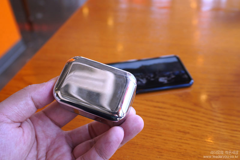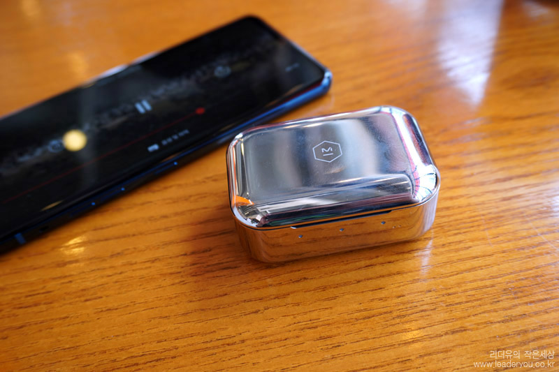 마스터앤다이나믹 MW07 충전 케이스는 스테인리스 소재로 묵직하면서도 화려한 매력을 느낄 수 있습니다. 보여지는 이미지 만큼은 그 어떤 무선 이어폰 보다 고급스럽습니다.