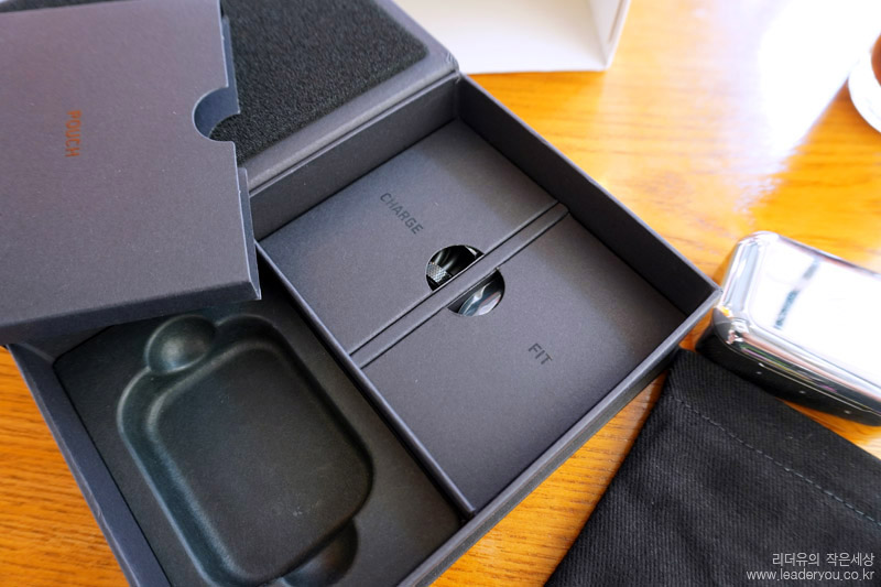 위쪽에는 구성품별로 포장되어 있는 것을 확인할 수 있습니다. 프리미엄 무선이어폰 답게 패키지 구성에도 많이 신경을 쓴 것이 느껴집니다.