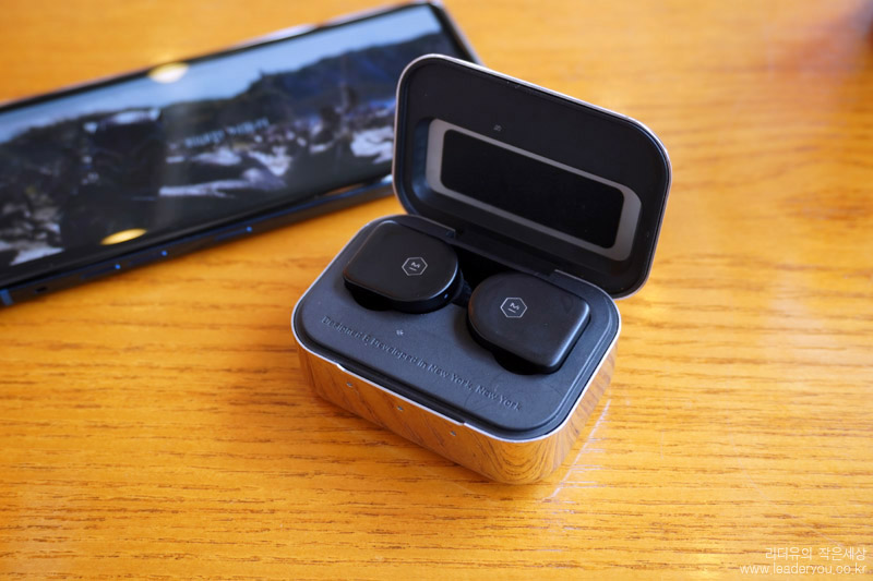 마스터앤다이나믹 MW07 덮개를 열었을때 외부에서 보는 느낌입니다. 고급스러움 느낌 가득입니다.