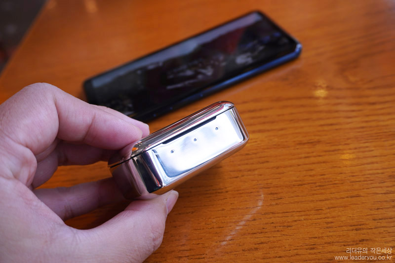 참고로 케이스 덮개는 자석으로 붙는 구조입니다. 자력이 세서 찰칵 달라 붙는 느낌이 좋습니다. 장착된 이어폰은 자석으로 붙는 구조는 아닙니다.