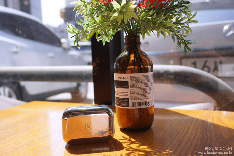 마스터앤다이나믹 MW07 충전 케이스는 스테인리스 소재로 묵직하면서도 화려한 매력을 느낄 수 있습니다. 보여지는 이미지 만큼은 그 어떤 무선 이어폰 보다 고급스럽습니다.