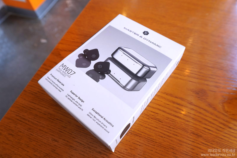다스터앤다이나믹 MW07 (MASTER & DYNAMIC MW07) 패키지입니다. 고급스러운 제품 이미지가 눈길을 사로 잡습니다.