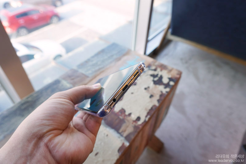 갤럭시S10 5G에 기본제공된 클리어 케이스를 장착한 모습입니다. 투명한 케이스라 갤럭시S10 5G 디자인 매력을 그대로 느낄 수 있습니다. 추가로 케이스 구매를 하지 않아도 되는 매력을 갖췄습니다.