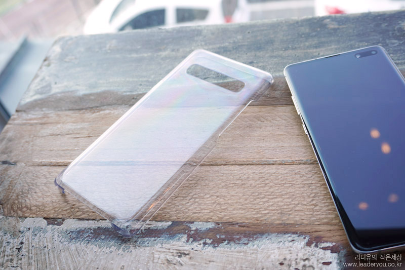 갤럭시S10 5G에 기본제공된 클리어 케이스를 장착한 모습입니다. 투명한 케이스라 갤럭시S10 5G 디자인 매력을 그대로 느낄 수 있습니다. 추가로 케이스 구매를 하지 않아도 되는 매력을 갖췄습니다.
