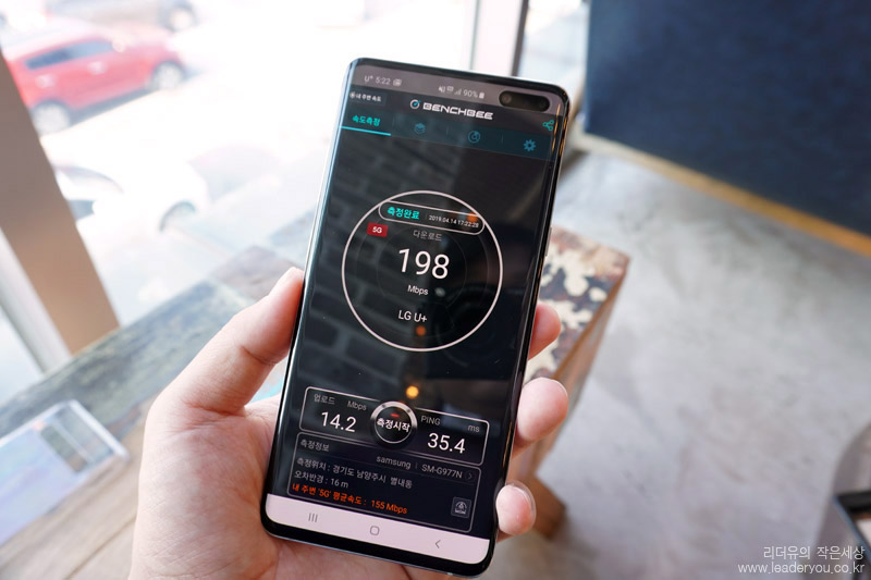 참고로 유플러스 5G 인터넷 속도를 테스트하기 위해 돌려봤습니다. 다운로드 198Mbps, 업로드 14.2Mbps가 나왔습니다. 아직 완벽한 5G망이 구축된것은 아니기에 속도는 아쉽지만 망은 계속 개선이 되고 있기 때문에 향후 더 빠른 속도를 볼 수 있을 것으로 기대가 됩니다.