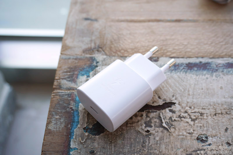 갤럭시S10 5G 구성품에서 가장 큰 변화는 25W 초고속 어댑터가 제공된다는 것입니다. 갤럭시S10 플러스에는 없는 어댑터로 더 빠르게 갤럭시S10 5G를 충전할 수 있습니다. 단자 연결 방식도 USB-C로 되어 있습니다.
