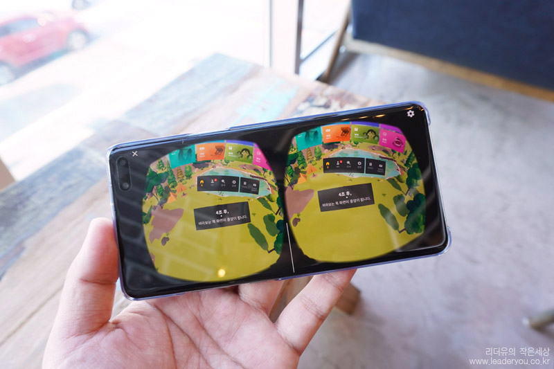 VR모드로 하면 이렇게 두개의 화면이 구분되어 있는데요. 기기안에서는 입체적으로 공간을 인지할 수 있습니다.