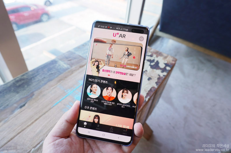 광고에서도 많이 나온 유플러스 AR 서비스입니다. 연예인을 화면속에서 더욱 리얼하게 만나는 서비스인데요. 같이 춤도 추면서 새로운 컨텐츠를 만들 수 있습니다.
