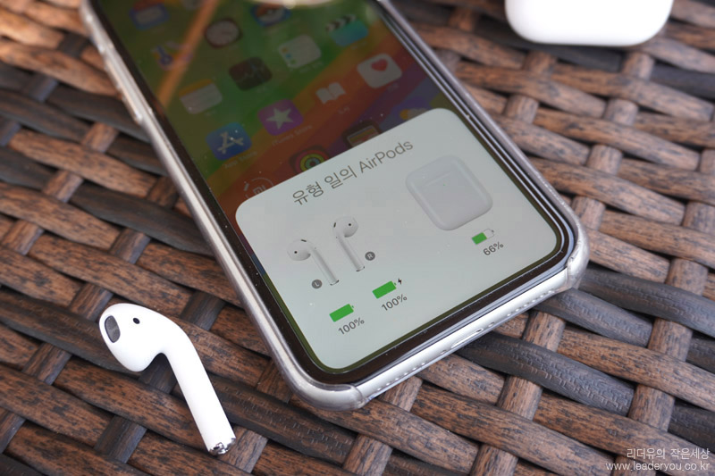 완전히 분리하면 에어팟의 배터리 정보만 볼 수 있습니다. 이렇게 섬세하게 단계별로 에어팟은 배터리 상태를 체크하고 있습니다.
