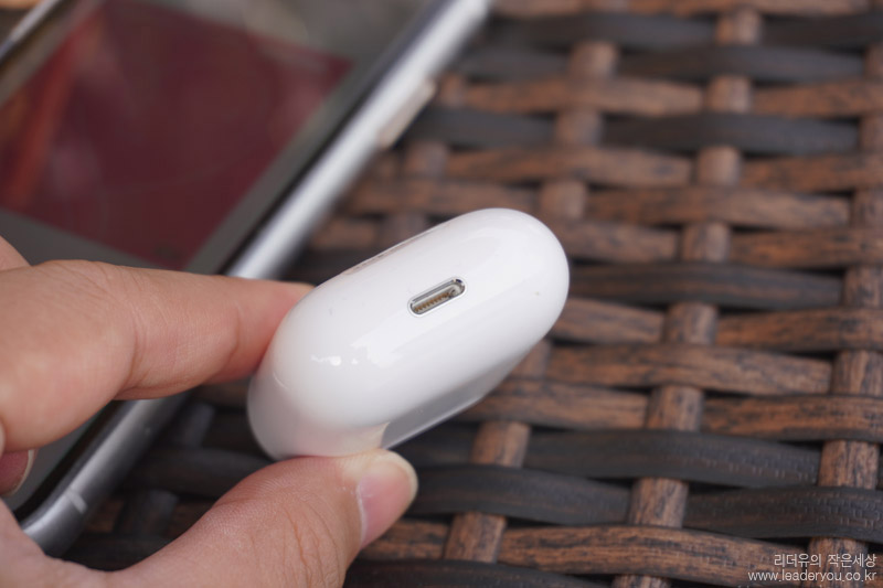 아래쪽에는 라이트닝 단자가 있습니다. 무선충전케이스 모델이기 때문에 무선충전도 되고 유선충전도 가능합니다.