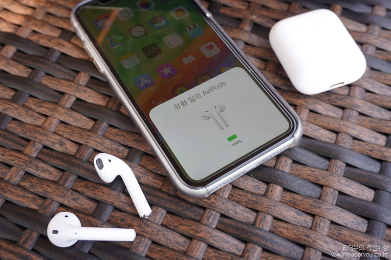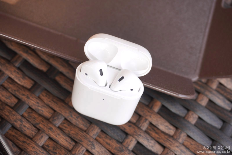 에어팟 2세대의 모습입니다. 깨끗하고 반짝거리는 에어팟의 모습을 보니 설레임 가득입니다.
