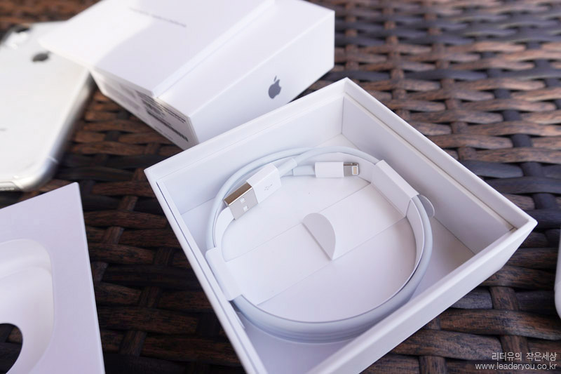 아래쪽에는 라이트닝 케이블이 들어 있습니다. 에어팟 무선충전케이스 모델이지만 기본적으로 유선 충전도 지원합니다.