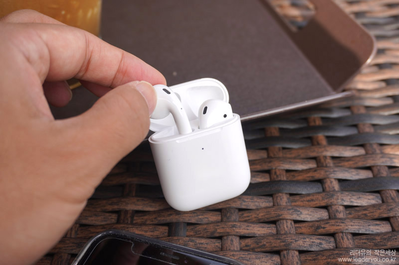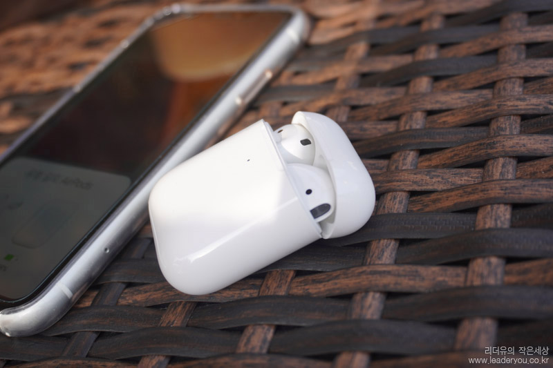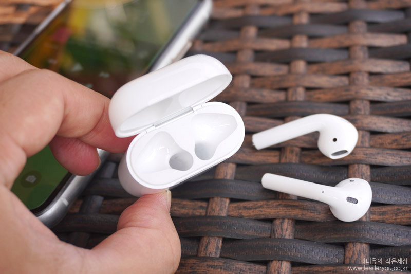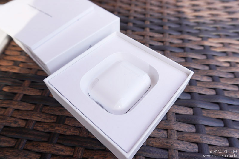 에어팟 2세대의 모습입니다. 깨끗하고 반짝거리는 에어팟의 모습을 보니 설레임 가득입니다.