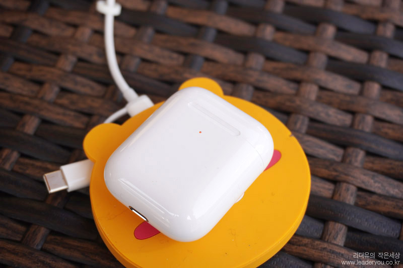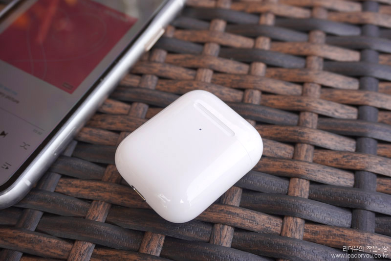에어팟 2세대를 상징하는 무선충전을 하는 모습입니다. 선을 꼽고 충전하는것이 어려운 일은 아니지만 무선충전이 확실히 편하고 관리하기가 좋습니다. 에어팟 2세대는 무선충전케이스 모델이 있고 일반 모델이 있는데요. 가격차가 5만원 정도 차이나지만 무조건 무선충전케이스 모델을 선택하라고 추천하고 싶습니다. 5만원 이상의 가치를 느낄 수 있는 확실한 매력포인트입니다.