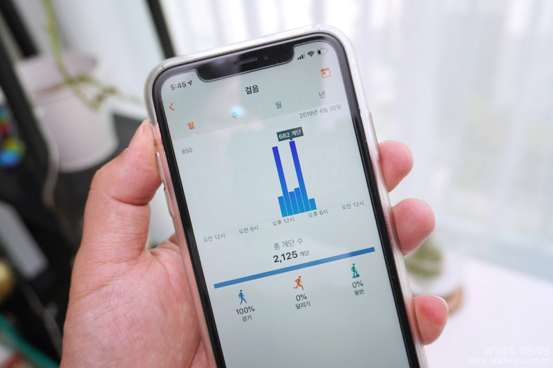 걸음수 체크도 시간대별로 확인이 가능해서 자신이 얼마나 움직이고 지내는지 잘 알 수 있습니다.