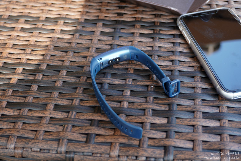 밴드는 부드러운 실리콘 재질로 되어 있고 일반적인 시계처럼 착용을 할 수 있습니다. 참고로 화웨이 스마트밴드3 프로 (화웨이 Band 3 pro) 색상은 두가지가 있습니다. 블랙과 스페이스 블루, 둘 다 무난한 색상이라 마음에 드는 색상을 선택하시면 됩니다.