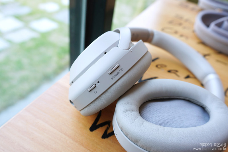 헤드 유닛 아래쪽에는 전원 버튼, NC/AMBIENT를 설정하는 버튼이 있습니다. 노이즈캔슬링 기능을 버튼으로 설정할 수 있어 노이즈캔슬링 기능을 쉽게 끄고 켜고 할 수 있습니다.