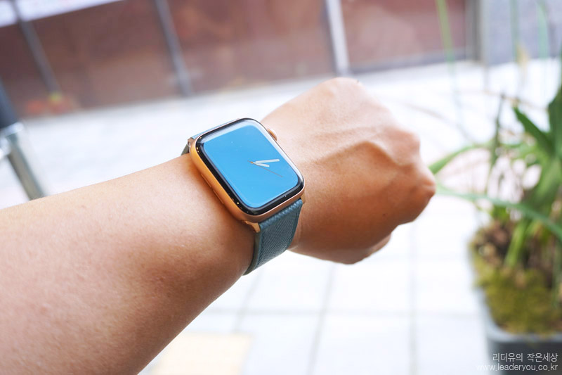 애플워치 골드 색상이라 밴드와 연결되는 골드 컬러까지 완벽한 조합을 보여주고 있습니다. 색상에 따라 다양한 조합이 가능하니 참고해 두시면 좋을것 같습니다.
