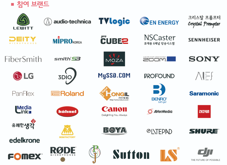 현장에 참여하는 브랜드를 보면 유튜브 촬영시 필요한 장비 브랜드들이 가득 나옵니다. 1인 미디어에 특화된 장비들을 볼 수 있는데요.젠하이저의 신제품 무선 마이크도 나올 예정이고 촬영 모니터, 음원 라이브 서비스, 드론, 짐벌 등 있고 소니, 캐논, 파나소닉, 니콘 등 유명 카메라 업체의 다양한 모델도 볼 수 있을 것입니다.