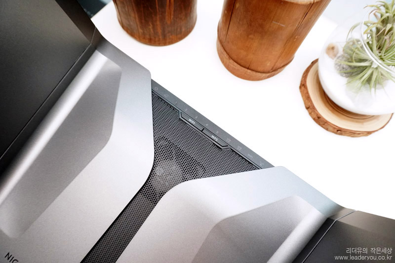 윗면의 그릴은 열을 배출하는 방열 시스템이 되어 있고 상태 LED 확인이 가능합니다.