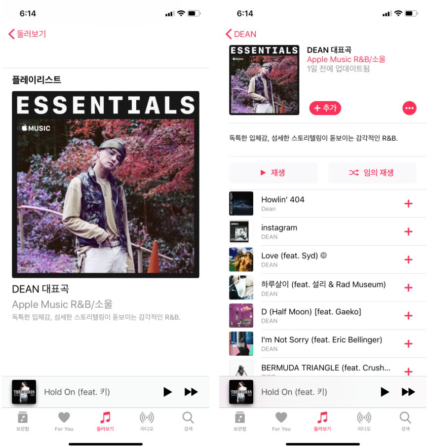 애플뮤직에서 6일간 독점 공개되는 가수 딘(DEAN) 신곡 'Howlin' 404' 기대되시죠~ 지금바로 감상해 보세요!