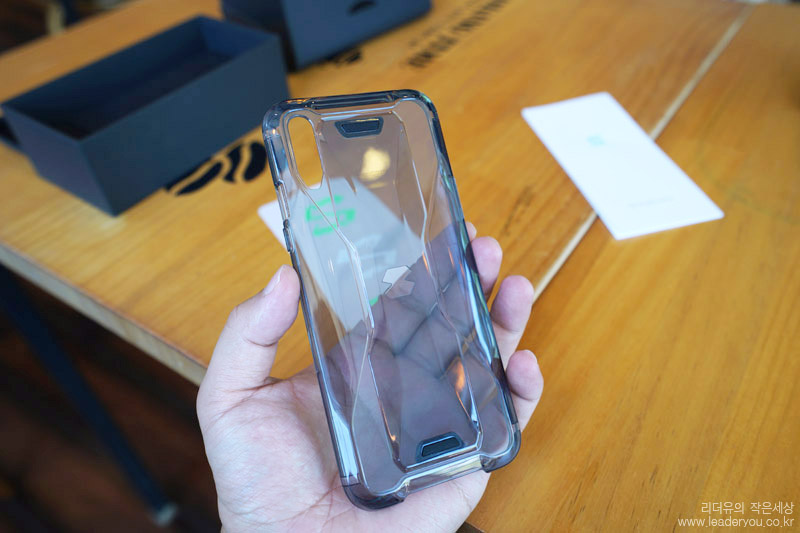 블랙샤크2 구성품으로 제공되는 기본 젤리 케이스도 고급스럽습니다. 블랙샤크2 뒷모습을 그대로 형상화해 완벽한 핏감을 느낄 수 있습니다.