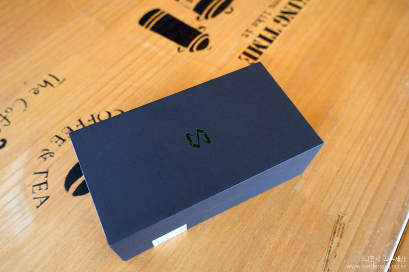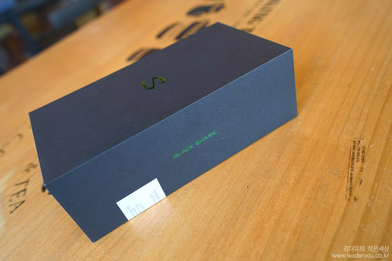 블랙샤크2 패키지 입니다. 블랙 색상에 반짝이는 녹색 컬러로 블랙샤크2만의 아이덴티티를 보여주고 있습니다. 한국에 정식 출시된 모델이라 한국어로 씰이나 제품 설명이 붙어 있습니다.
