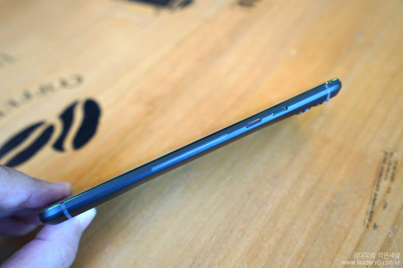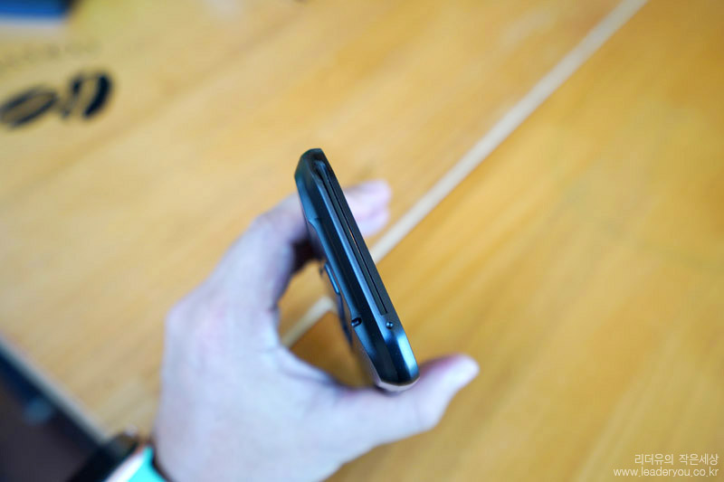 전면 사이드 라인을 보면 녹색으로 포인트 라인이 들어가 엣지있는 디자인 매력을 느낄 수 있습니다. 블랙과 그린의 조합이 게이밍 스마트폰만의 차별화된 매력을 느낄 수 있게 하고 있습니다.