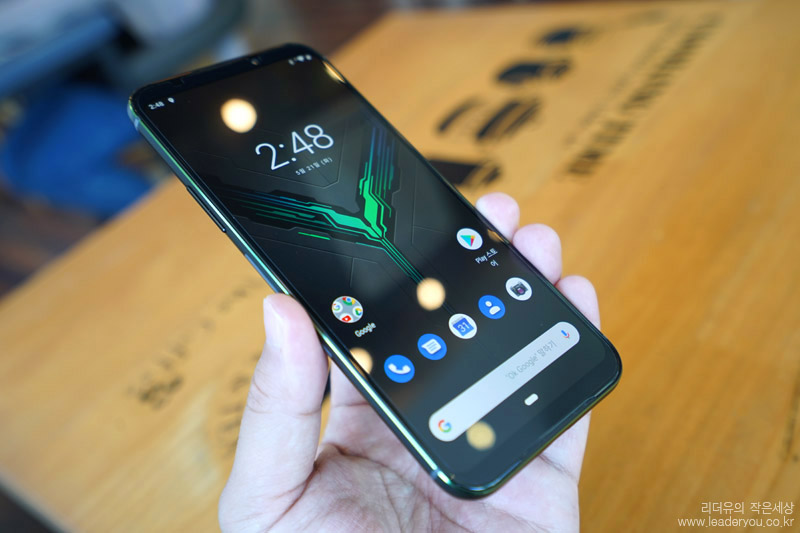 아쉬운점은 상하단 배젤 두께가 어느정도 있다는 것입니다. 최신의 스마트폰들이 상하단 배젤을 줄여가고 있는데요. 블랙샤크2는 슬림한 디자인에 가치를 두지 않고 게임에 최적화된 설계를 담아 디자인적으로는 약간의 아쉬움을 느낄 수 있습니다.