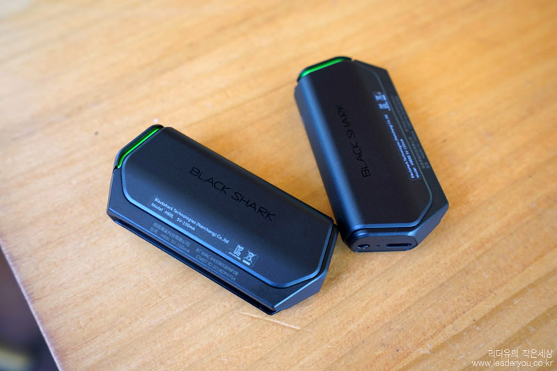 윗면에는 아무것도 없이 깔끔한 마감을 보여주고 있습니다. 또 한가지 아쉬움이 있다면 블랙샤크2는 이어폰 단자를 지원하지 않습니다. 블루투스 이어폰이 대세니까 큰 단점은 아니지만 유선 이어폰을 좋아했던 분들에겐 아쉬움으로 다가올 것 같습니다.