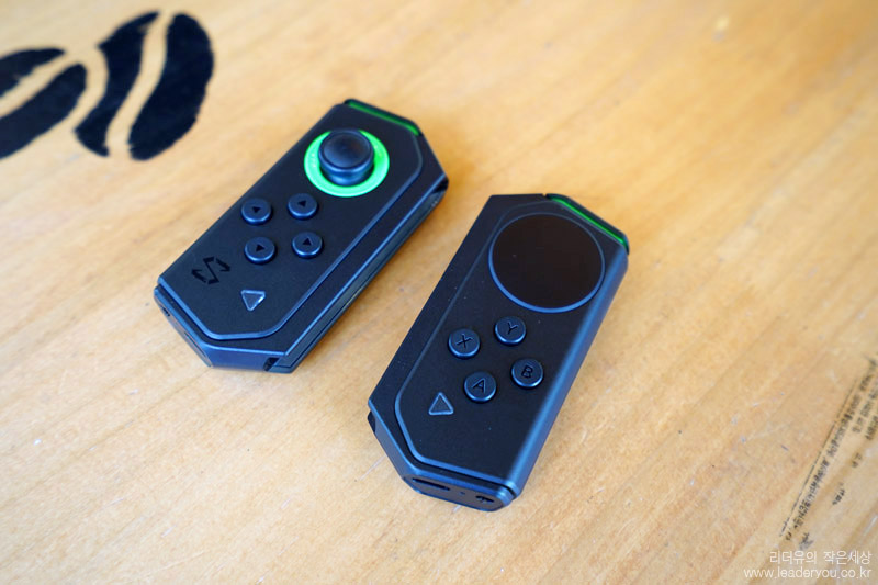 게임패드는 기본적으로 왼쪽 게임패드 단독 사용이 가능하고 추가로 오른쪽 게임패드를 연결해 더 원활한 게임을 할 수 있습니다. 전원을 넣는 방식은 스위치로 되어 있어서 직관적인 컨트롤이 가능하고 USB-C 단자로 충전을 할 수 있습니다.