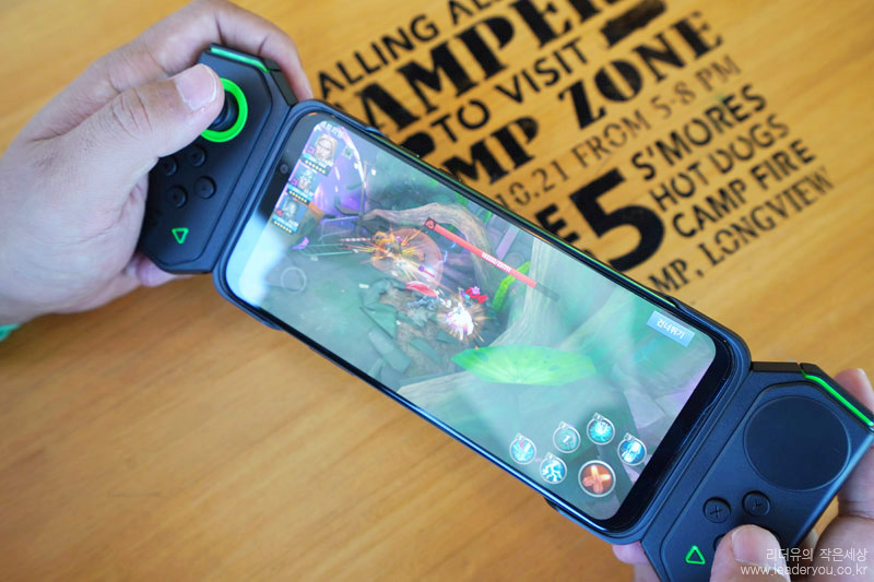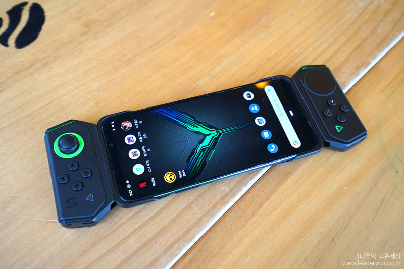 블랙샤크2, 게임패드 조합입니다. 정말 닌텐도 스위치처럼 게임기를 보는 느낌입니다.