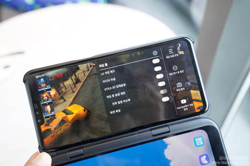 LG V50 ThinQ는 듀얼스크린을 통해 게임 컨트롤이 가능한 특별함도 갖췄습니다. 게임 패드 실행 방법은 게임을 실행 후 게임툴에 가면 LG게임 패드를 활성화 할 수 있는 메뉴가 있습니다.