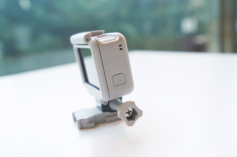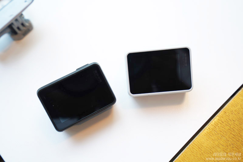 최근 오즈모 액션이 고프로의 디자인을 그대로 가져가서 만들었는데요. 전면 스크린이 매력적이지만 고프로 액세서리를 그대로 활용하고자 하는 꼼수가 보이는 점은 안타깝습니다.