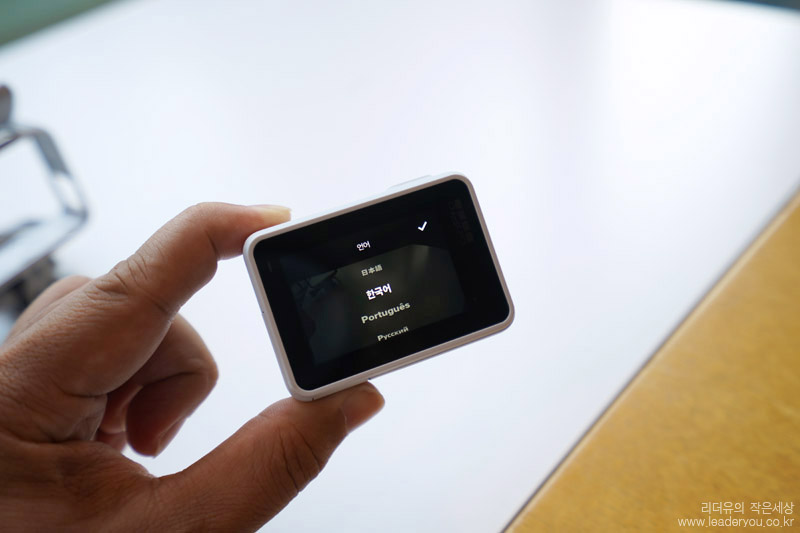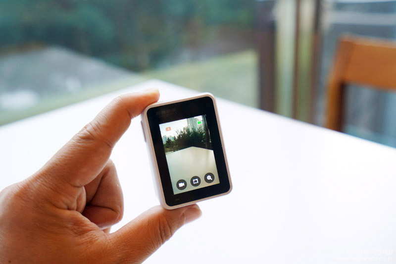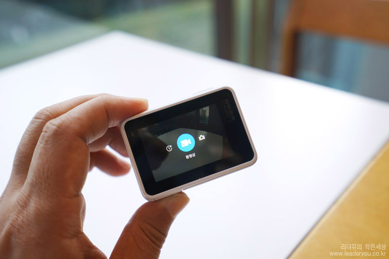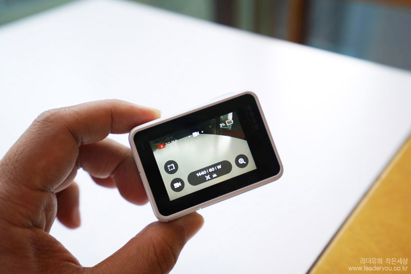 전면 LCD에는 현재 고프로 사용 상태를 쉽게 볼 수 있게 지원합니다. 해상도, 컨텐츠 갯수, 배터리 상태까지 확인이 가능합니다.