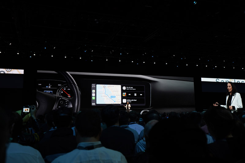 카플레이에도 변화가 생깁니다. 음악, 지도를 한번에 볼 수 있는 새로운 대시보드 화면을 보여주고 있습니다. 새로운 캘린더 앱, 서드파티앱 길찾기, 오디오 앱에 대한 시리 지원등 다양한 업데이트를 기대해 볼 수 있습니다.