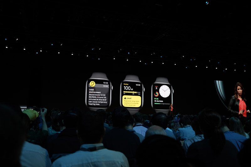 Watch OS 6에서는 청력 건강까지 챙길 수 있는 기능이 추가됩니다. 음악을 크게 듣는 사람들이 많아지면서 청력 건강이 안좋아진 사람이 많다고 합니다. 이 경우 인지 능력 저하로 이어지는데요. 애플워치는 노이즈앱을 통해 주변 환경을 파악해 청력에 문제가 될 경우 애플워치가 알림을 주게 됩니다.