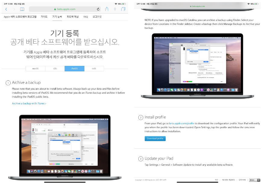 애플 베타 소프트웨어 프로그램 사이트 - iOS13, iPadOS, macOS 업데이트 방법