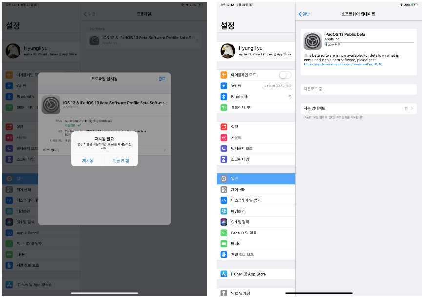 설치를 하면 재시동을 하고 설정 -> 일반 -> 소프트웨어 업데이트 가면 업데이트할 수 있습니다.