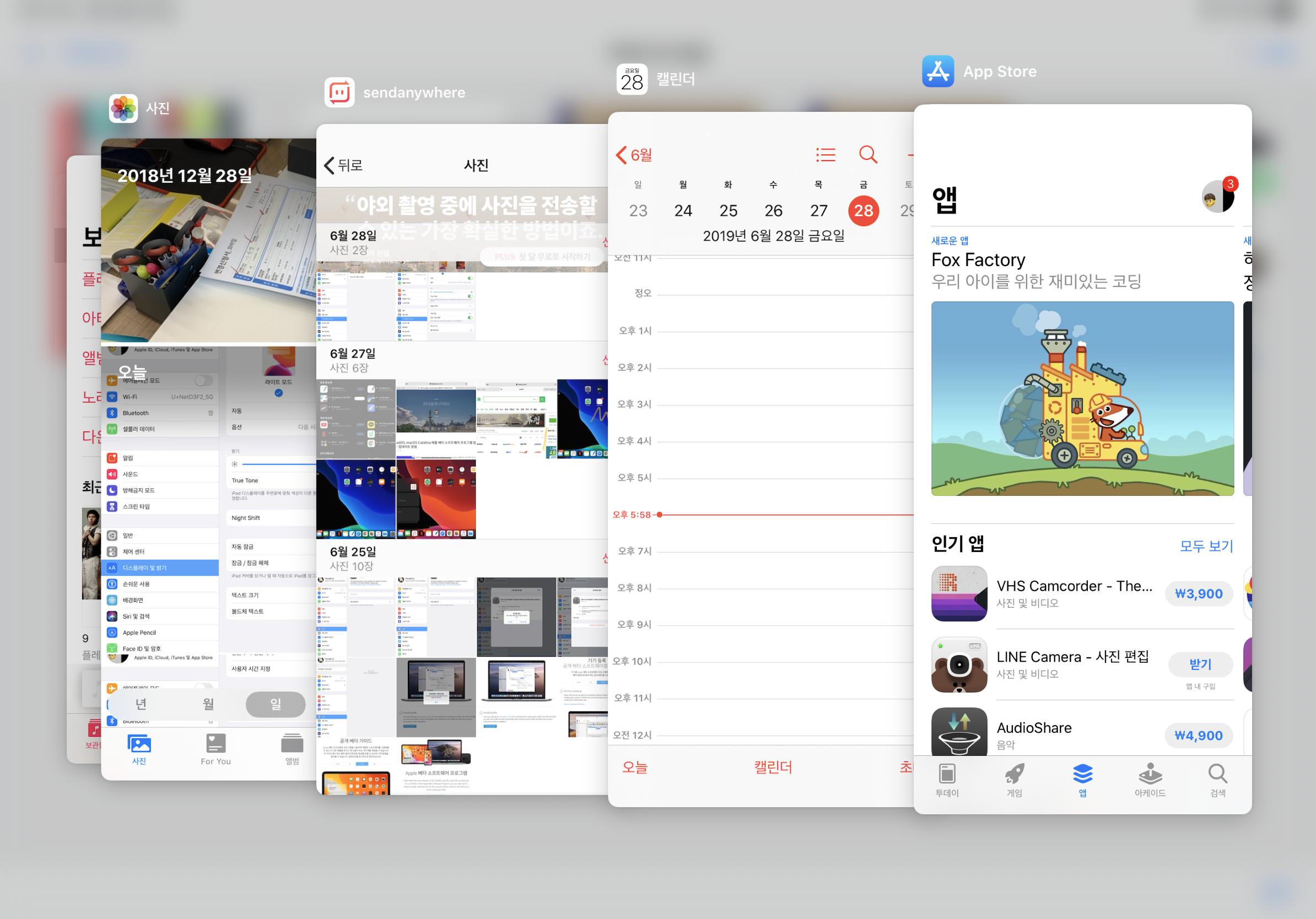 미리 보기로 다양한 앱을 볼 수도 있고 빠르게 앱 전환이 가능합니다.